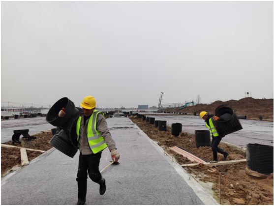 2月1日,農(nóng)歷大年初一,隔離點項目室外附屬班組施工人員正在進行雨污水管道施工作業(yè),雖然經(jīng)過節(jié)前加班加點的搶建工作,隔離點項目房屋基礎(chǔ)工程和道路工程已全部完工,但為了保證春節(jié)期間項目現(xiàn)場安全及已完工程的成品保護,項目部安排了春節(jié)期間值班值守及工作部署,全力搶工期、抓進度,確保節(jié)后順利復(fù)工和項目早日交付。