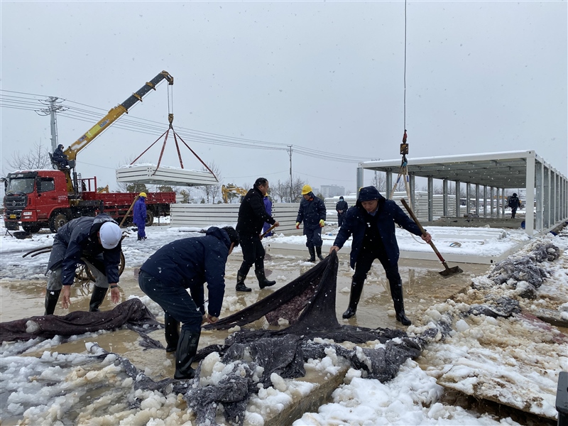 2月7日(農(nóng)歷正月初七),冬雪紛紛、寒風瑟瑟,惡劣的天氣并未阻擋隔離點項目各參建單位的激情和干勁。中午12時40許,監(jiān)理單位在現(xiàn)場開展巡查,鰲峰建設(shè)在項目部組織施工會商工作。下午,國資集團黨員突擊隊、志愿服務(wù)隊主動請“戰(zhàn)”,步履匆匆赴現(xiàn)場鏟雪除冰。副區(qū)長王劍赴現(xiàn)場督查指導工作并對項目進度表示肯定。